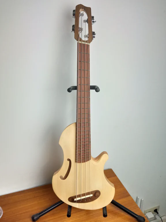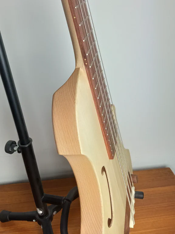 Instrument “fun”, fait en partie avec du bois upcyclé (épicéa et hêtre).