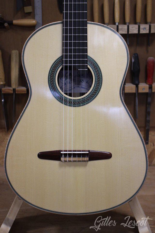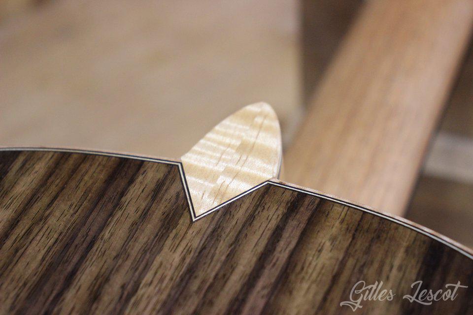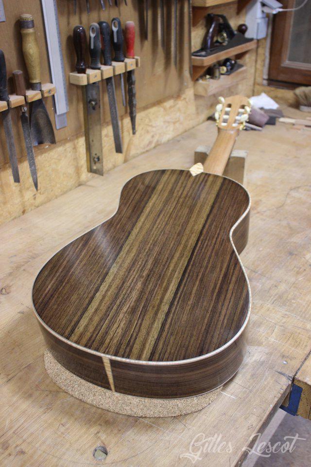 - Finition : vernis gomme laque sur la table, le dos et les éclisses; huile dure pour le manche